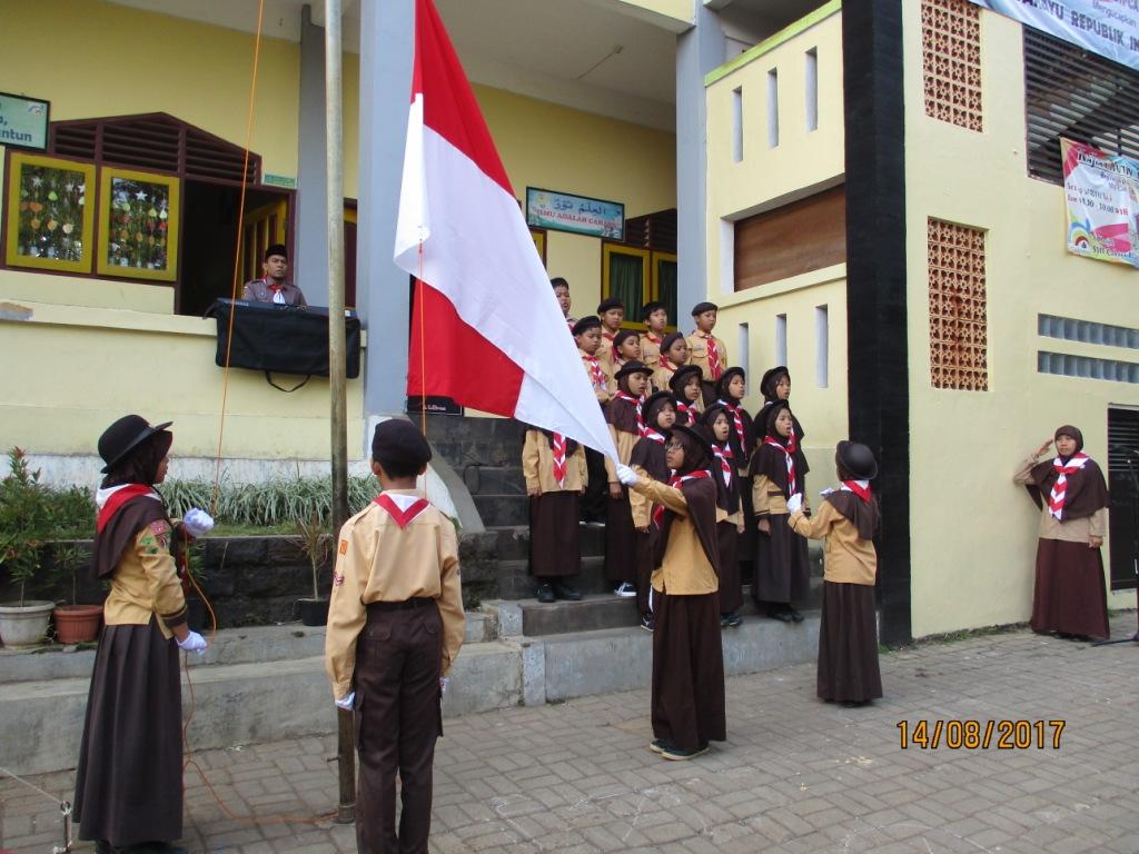 “Anak-anak yang dimuliakan Allah SWT, marilah kita amalkan Dwi Dharma yang sudah dibacakan oleh salah sata petugas upacara barusan,“ kata Siti Aminah, S.E saat tausyiah diperingatan HUT Pramuka ke-56, Senin, 14 Agustus 2017, di Halaman SDIT Cahaya Bangsa, Mijen, Semarang.