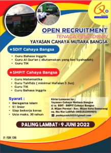 – Guru tahfidh( minimal hafalan 5 juz)